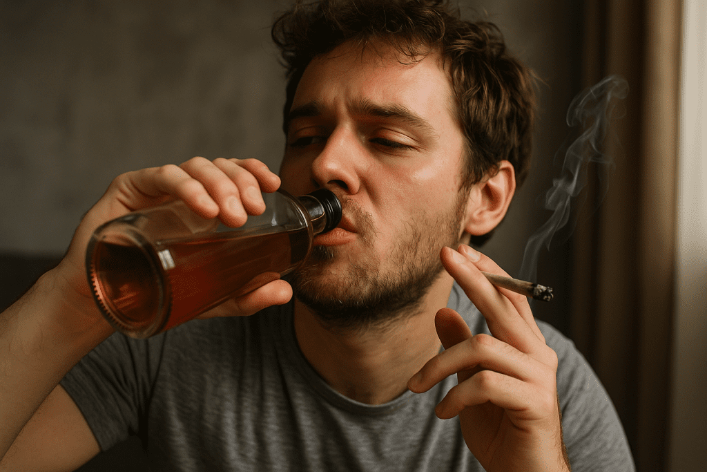 Mixing cannabis and alcohol often intensifies impairment, leading to dizziness, nausea, anxiety, and higher risk of alcohol poisoning.