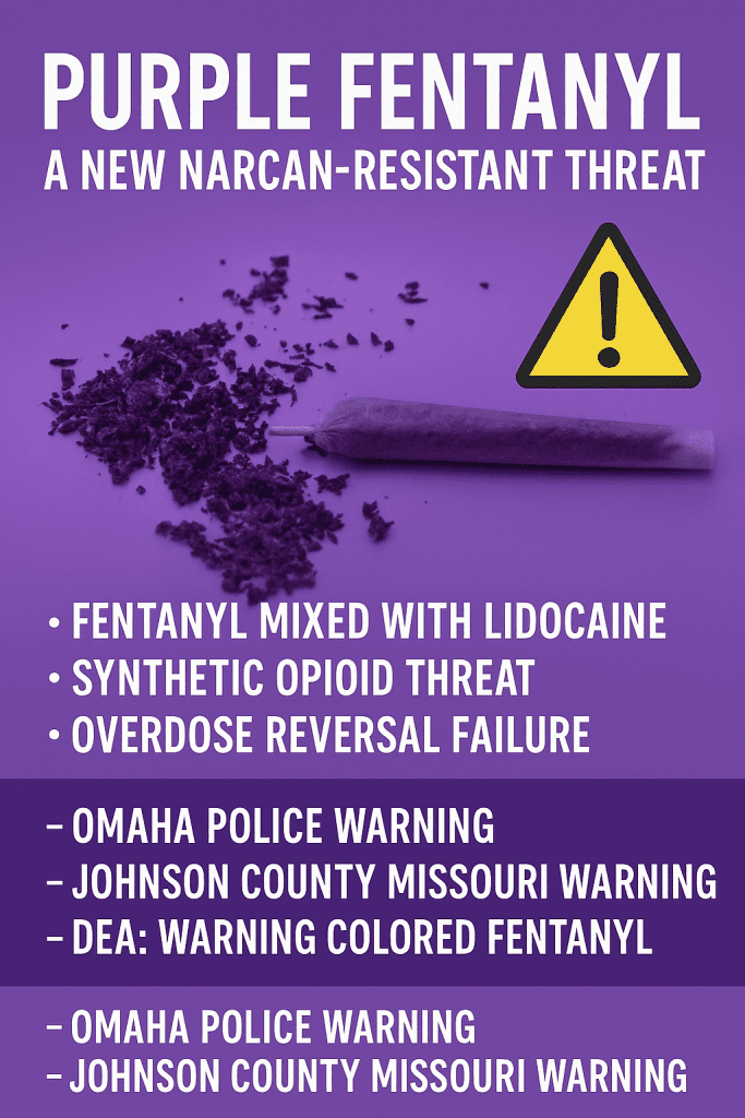 A new wave of concern is spreading across parts of the Midwest as law enforcement, public health officials, and addiction recovery centers issue urgent warnings about “purple fentanyl”. This variant—fentanyl adulterated with lidocaine, a local anesthetic—has proven resistant to Narcan (naloxone), the life-saving opioid overdose reversal medication. First identified in Omaha, Nebraska, and now in Johnson County, Missouri, purple fentanyl is alarming due to its intensified effects and failure to respond to conventional emergency treatment.