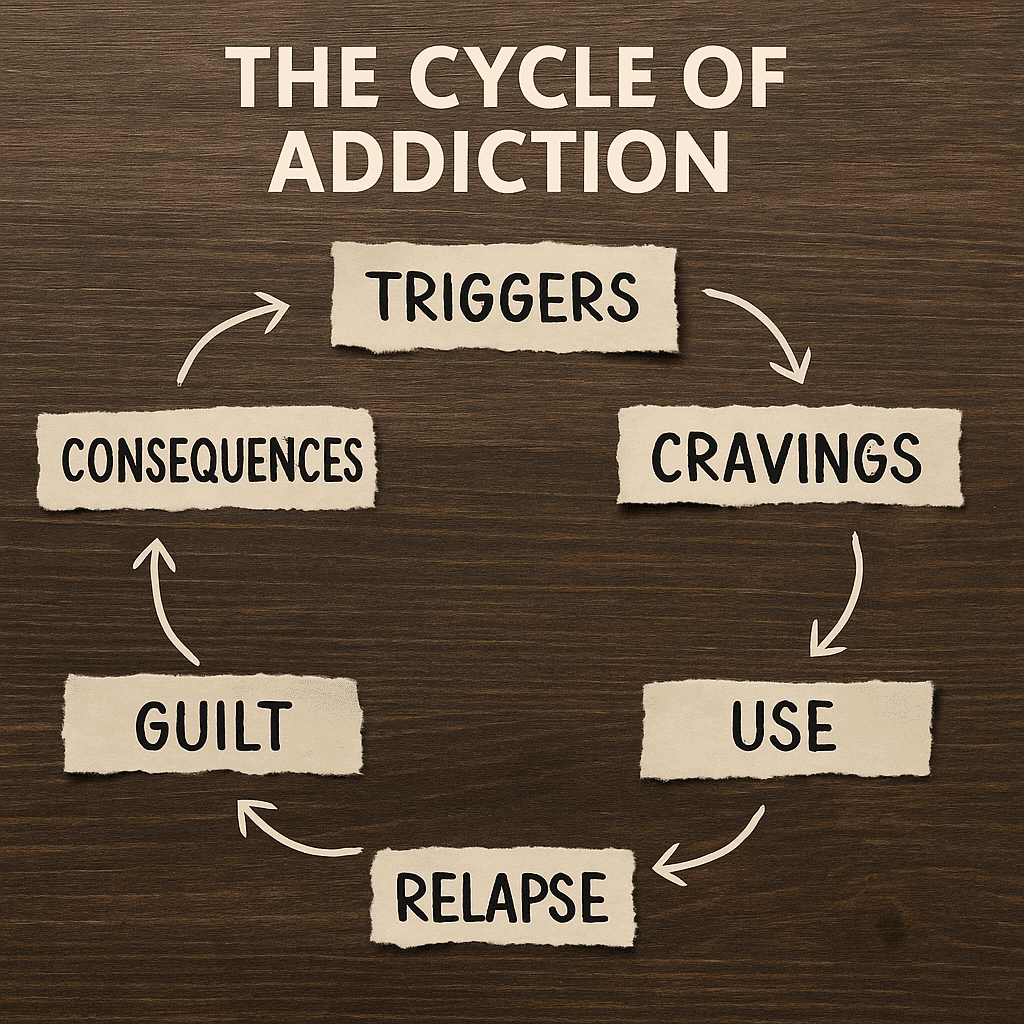 It’s the repeating pattern of triggers, cravings, use, consequences, and relapse that keeps people trapped in addictive behaviors.