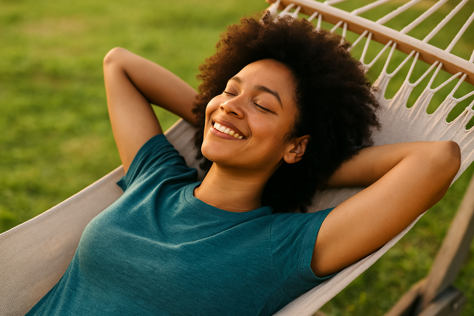 Man enjoying hybrid weed effects with relaxed body and clear mind at sunset